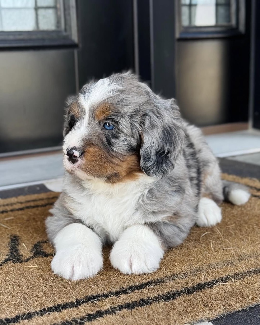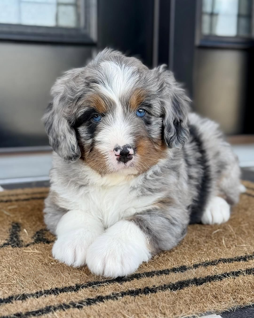 She is a gorgeous F1 mini Bernie doodle that will be around 35 to 40 pounds full grown! Maple has a very fun outgoing type of personality. She will never meet a stranger and is always happy and wagging her tail! She does very well with children and has a very well mannered temperament. She will have a very wavy/curly non-shedding hair coat! She is up-to-date on all of her vaccines and deworming. She will be ready to go home June 24 or anytime thereafter. If you would want to meet Maple or see additional videos, feel free to reach out we can easily schedule a FaceTime Call if you want to meet her.