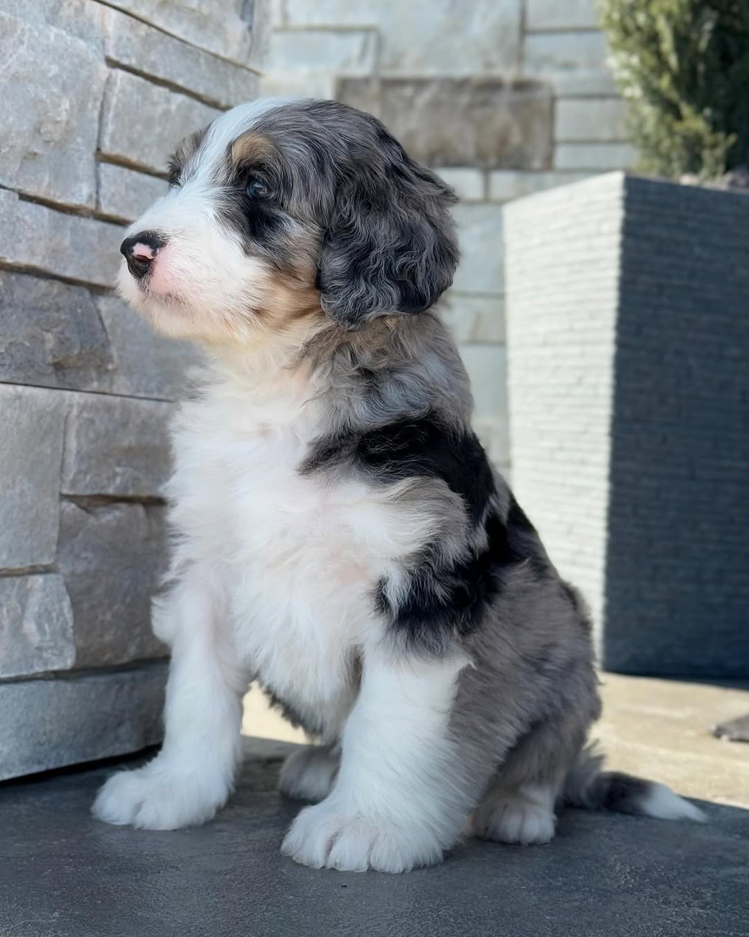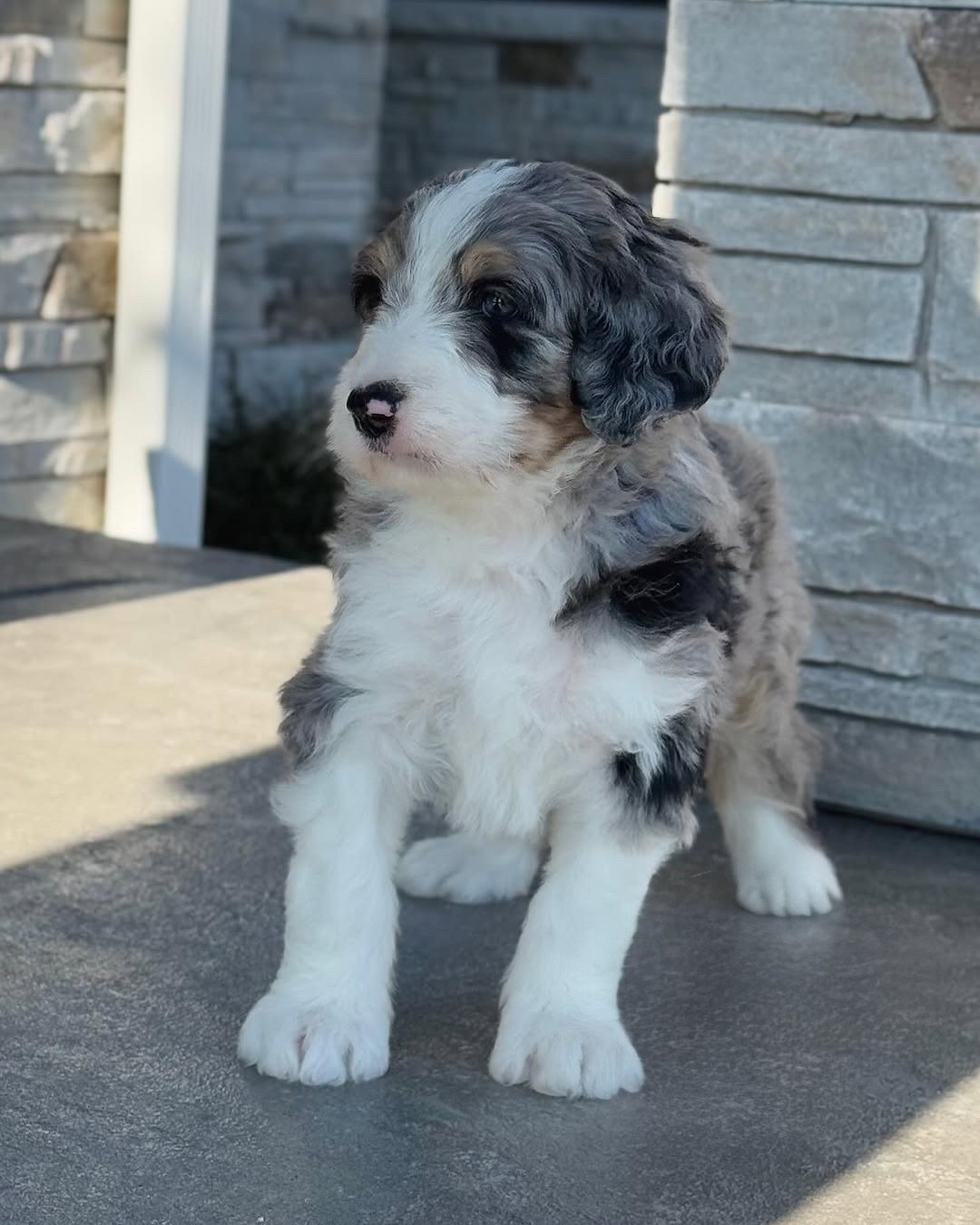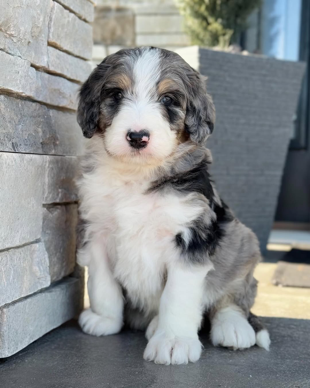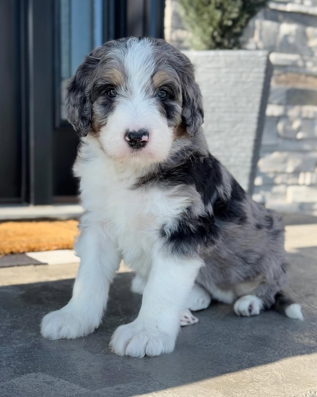 A spine is actually perfect💙 We cannot handle how beautiful this boy is and how striking his markings are. Aspire is a Micro Bernedoodle so he will be approximately 12-25 lbs. full grown and will have a thick and wavy hair coat. Aspine has an outgoing and confident personality but also really loves his cuddles. Come meet aspine in person!