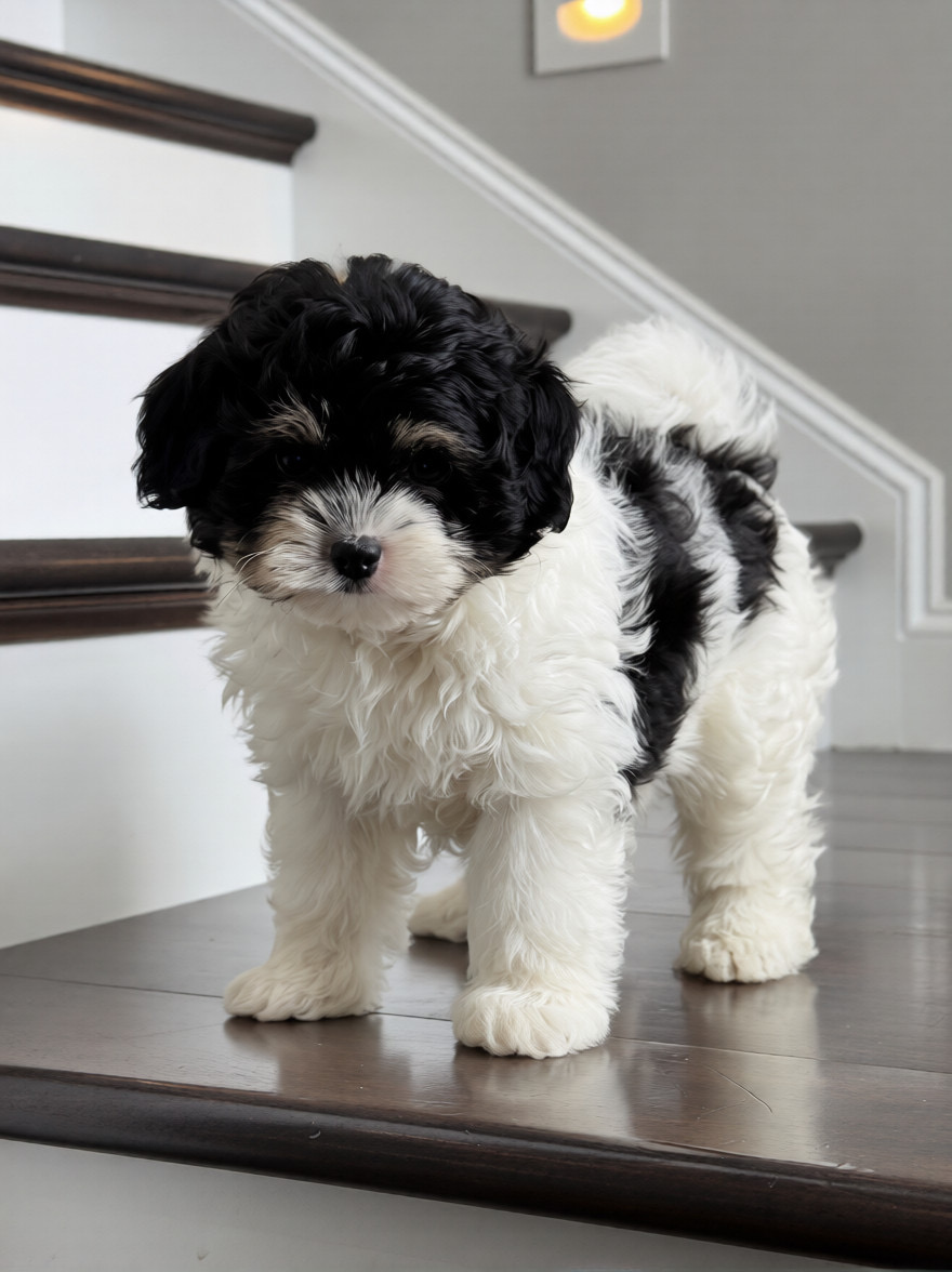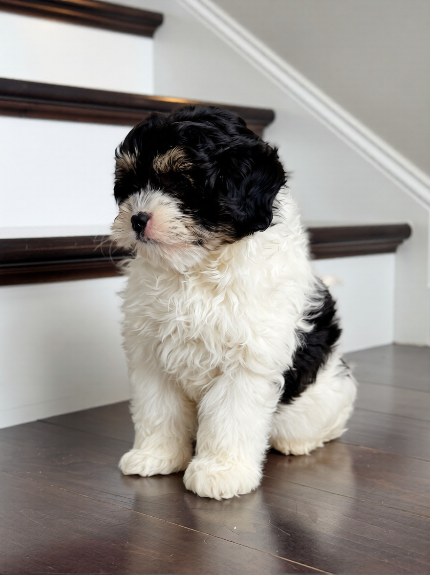 Toby is the sweetest boy 😍 he is an F1b Tiny Bernedoodle so he will be approximately 12-18lbs. full grown and will have a beautiful soft and wavy to curly hair coat. Toby has a very sweet and loving personality and is very smart.